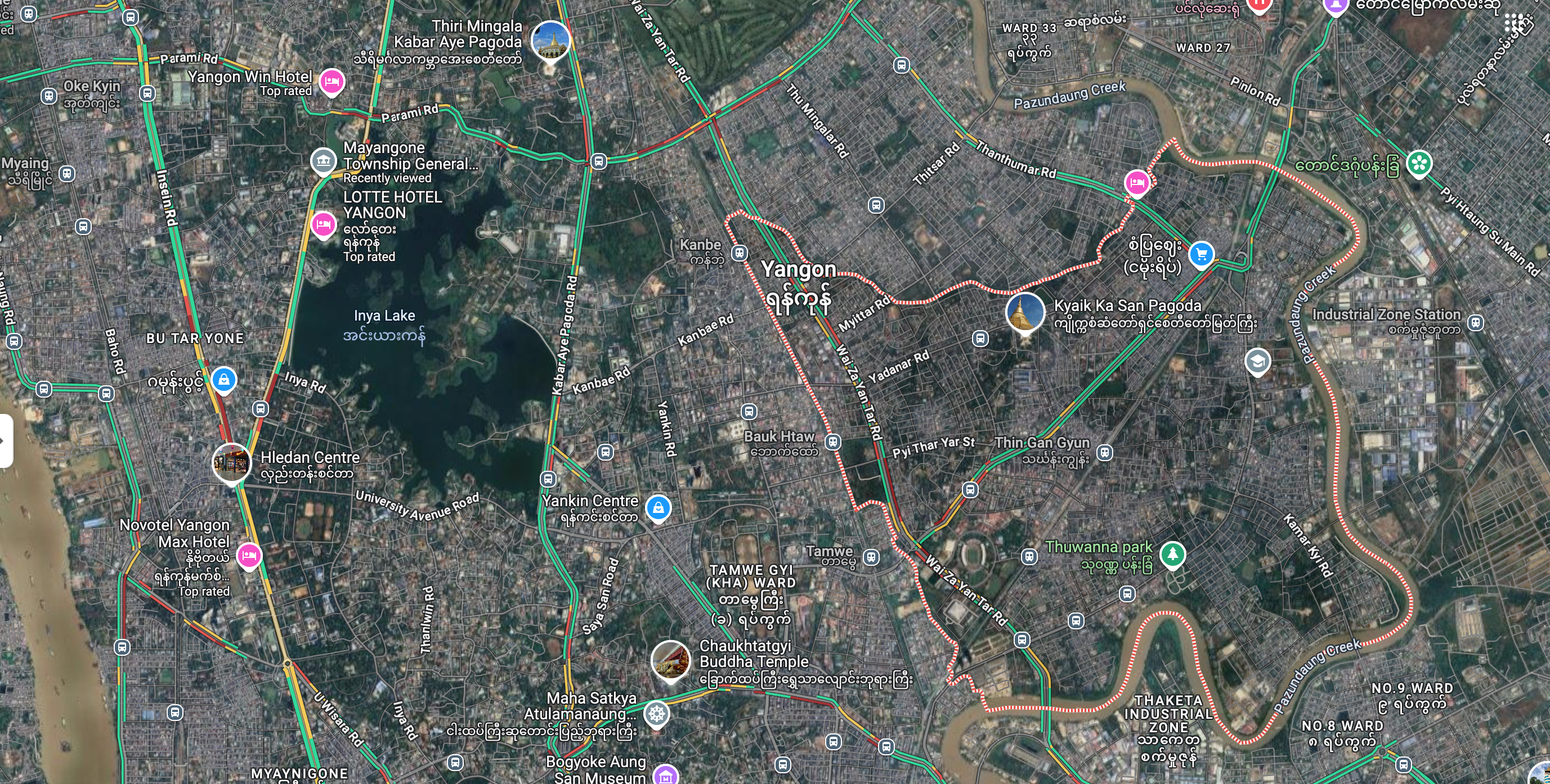 - Near Thingangyun General Hospital, clinics, schools, and local markets